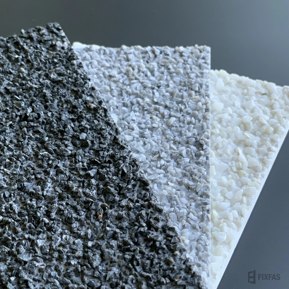 Värvivalikus on kolm tooni – hall, valge ja musta kivipurukattega plaat.